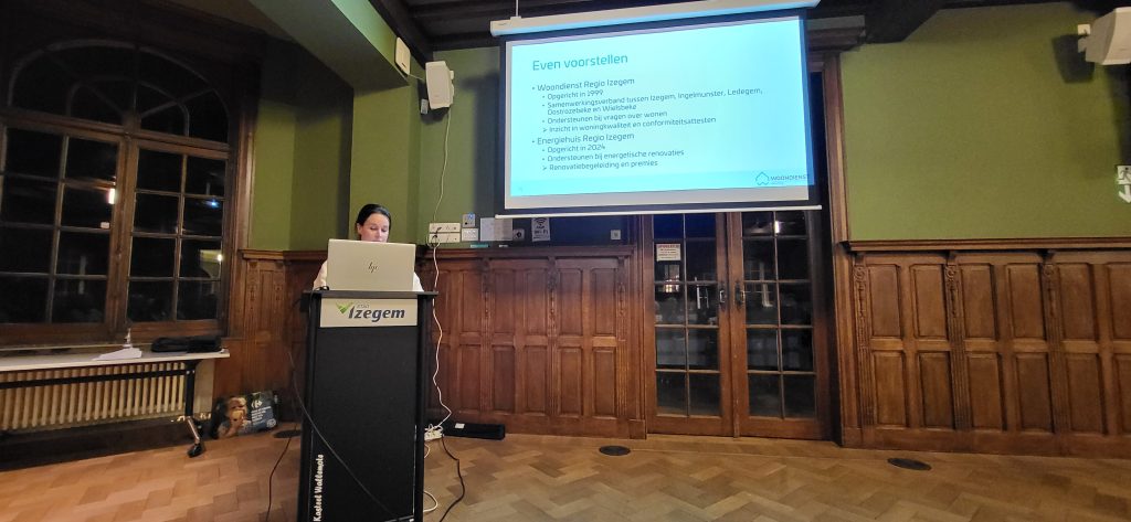 Op donderdag 26 maart kwamen de Woondienst Izegem, het Energiehuis en de Verenigde Eigenaars samen voor een infomoment over alles wat vastgoedeigenaars in de regio Izegem bezighoudt: verhuur, woonkwaliteit, mede-eigendom, renovatie, premies en leningen.